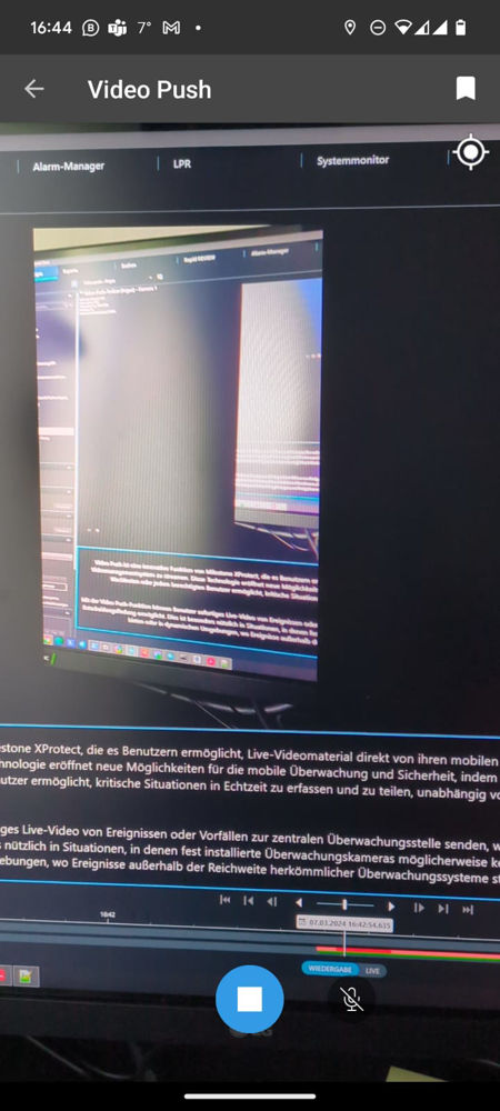 Mit der Video Push-Funktion können Benutzer sofortiges Live-Video von Ereignissen oder Vorfällen zur zentralen Überwachungsstelle senden, was eine schnelle Reaktion und Entscheidungsfindung ermöglicht. Dies ist besonders nützlich in Situationen, in denen fest installierte Überwachungskameras möglicherweise keinen vollständigen Überblick bieten oder in dynamischen Umgebungen, wo Ereignisse außerhalb der Reichweite herkömmlicher Überwachungssysteme stattfinden.